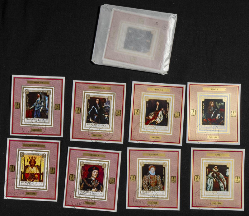 |**|1971. British kings and queens. Group of complete set IMPERFORATED on individual sheets. (Michel: 734/45). TO EXAM. Description of lots is limited to the cataloguing of the stamps and their characteristics. The total of the