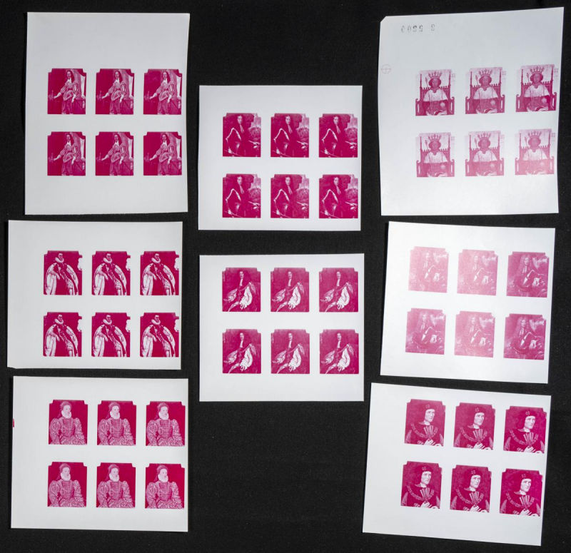 |**|1971. British kings and queens. Group of progressive plate proofs of the set. (Michel: 734/45). TO EXAM. Description of lots is limited to the cataloguing of the stamps and their characteristics. The total of the material