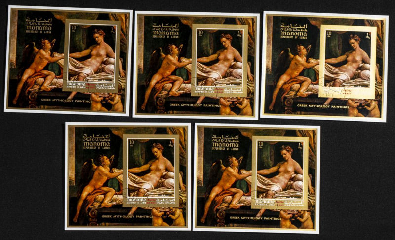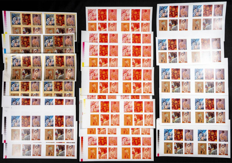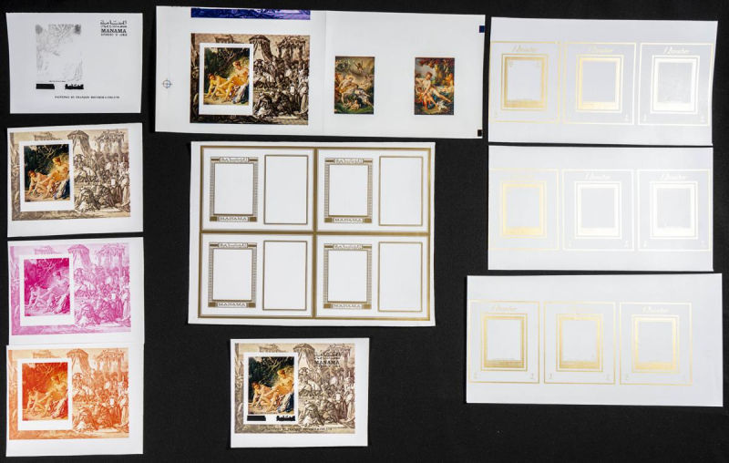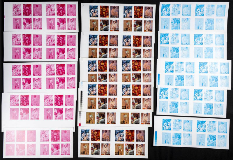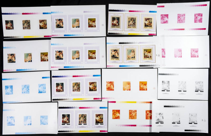 |**|1971. Boucher Nude painting. Group of progressive plate proofs of the set. (Michel: B104). TO EXAM. Description of lots is limited to the cataloguing of the stamps and their characteristics. The total of the material