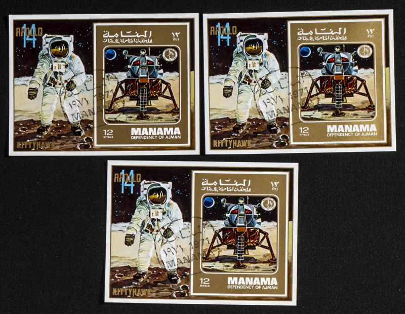 |**|1971. Apollo 14. Group of IMPERFORATED sets. (Michel: B95). TO EXAM. Description of lots is limited to the cataloguing of the stamps and their characteristics. The total of the material included in each case is photographed
