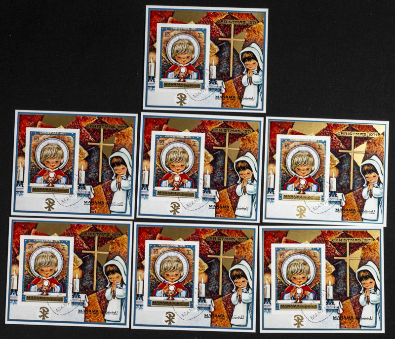 |º|1971. Christmas. Group of IMPERFORATED sets. (Michel: B128). TO EXAM. Description of lots is limited to the cataloguing of the stamps and their characteristics. The total of the material included in each case is photographed