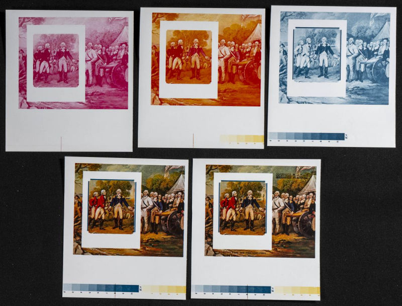 |**|1972. Philadelphia 1976. Group of progressive plate proofs of the set. (Michel: B158). TO EXAM. Description of lots is limited to the cataloguing of the stamps and their characteristics. The total of the material included in