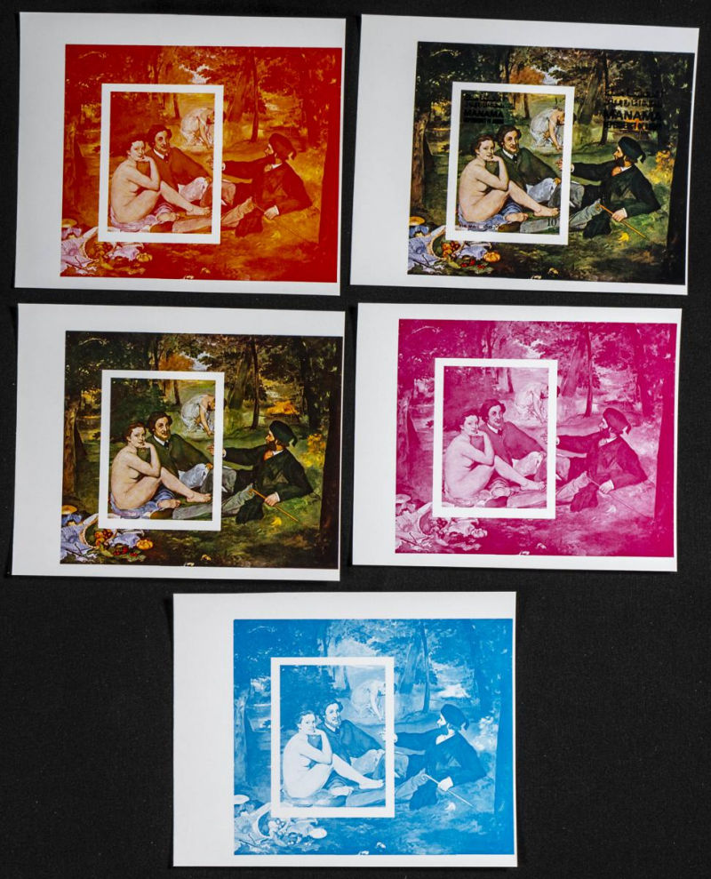 |**|1972. Manet painting. Group of progressive plate proofs of the set. (Michel: B160). TO EXAM. Description of lots is limited to the cataloguing of the stamps and their characteristics. The total of the material included in