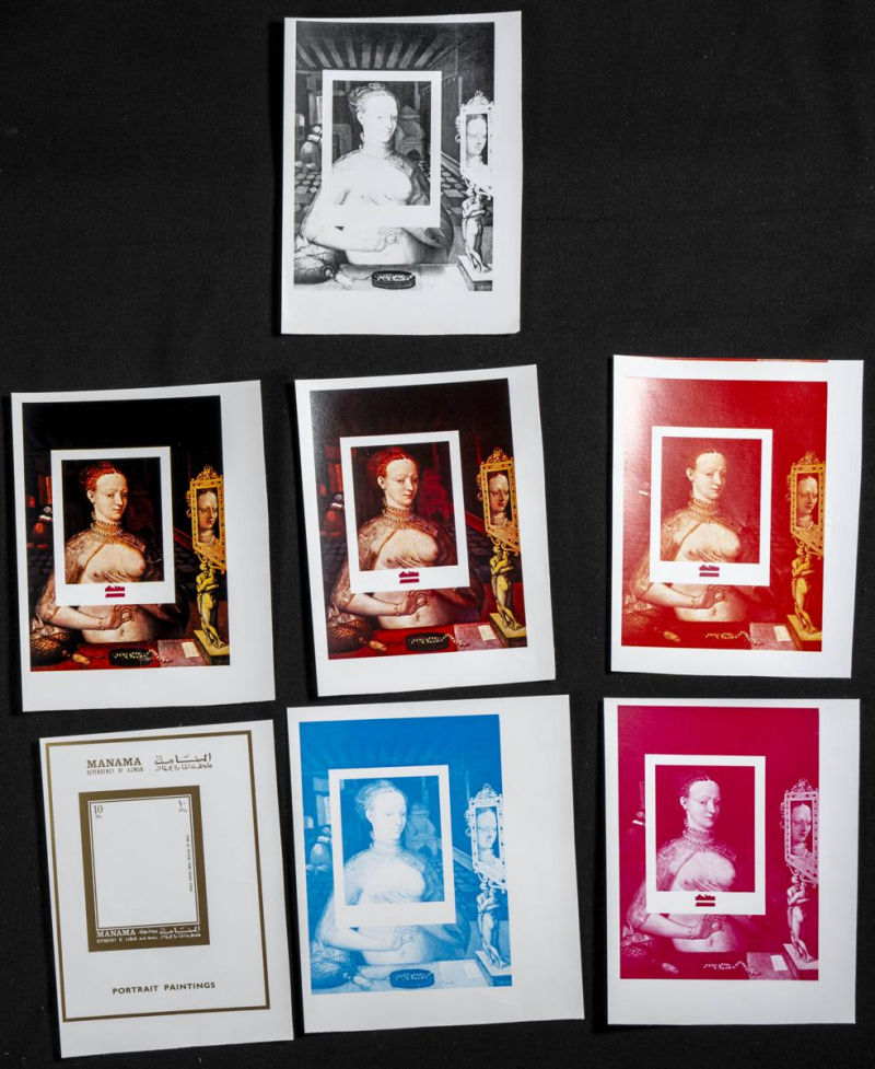 |**|1972. Paintings, Diane de Poitiers. Group of progressive plate proofs of the set. (Michel: B168). TO EXAM. Description of lots is limited to the cataloguing of the stamps and their characteristics. The total of the material