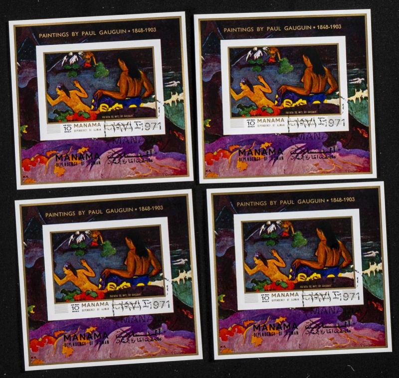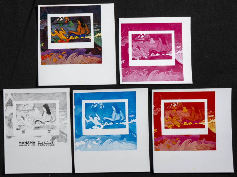 |**|1972. Gaugin painting. Group of progressive plate proofs of the set. (Michel: B169). TO EXAM. Description of lots is limited to the cataloguing of the stamps and their characteristics. The total of the material included in