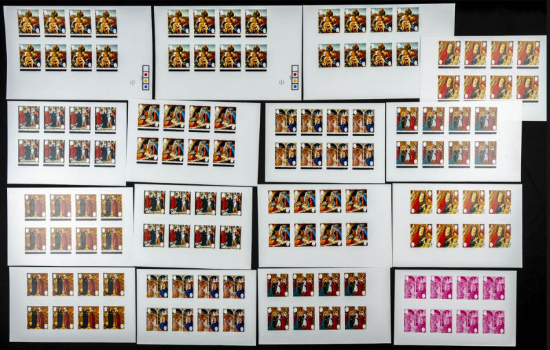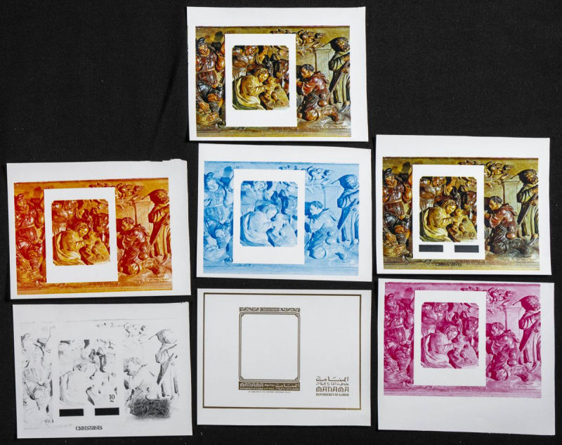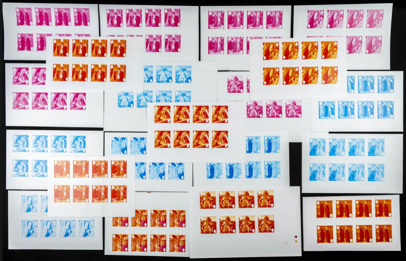 |**|1972. Christmas. Group of progressive plate proofs of the set. (Michel: B174). TO EXAM. Description of lots is limited to the cataloguing of the stamps and their characteristics. The total of the material included in each