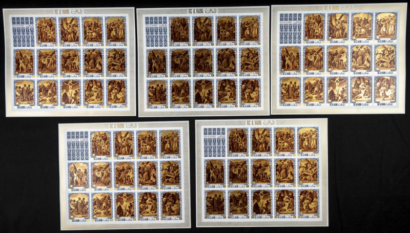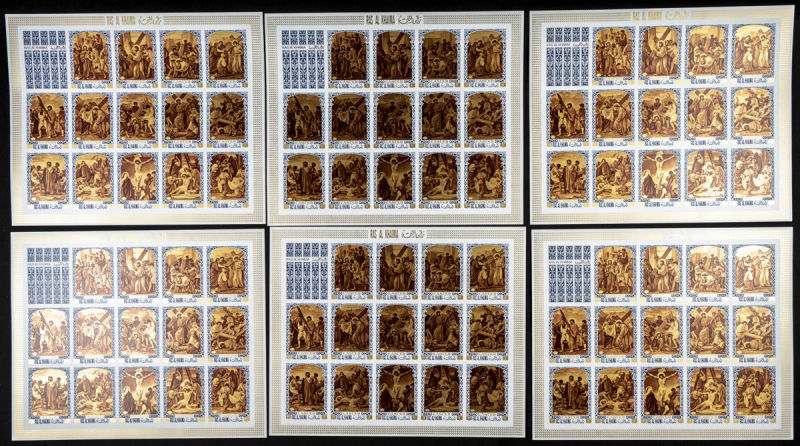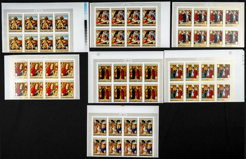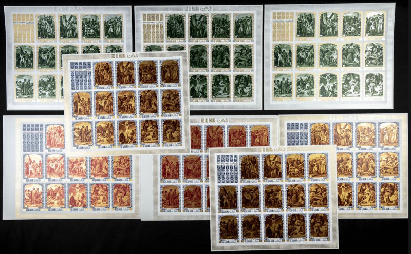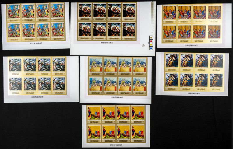 |**|1970. Life of Jesus Christ. Group of IMPERFORATED sets. (Michel: 491/97). TO EXAM. Description of lots is limited to the cataloguing of the stamps and their characteristics. The total of the material included in each case is