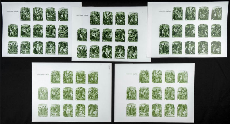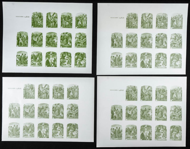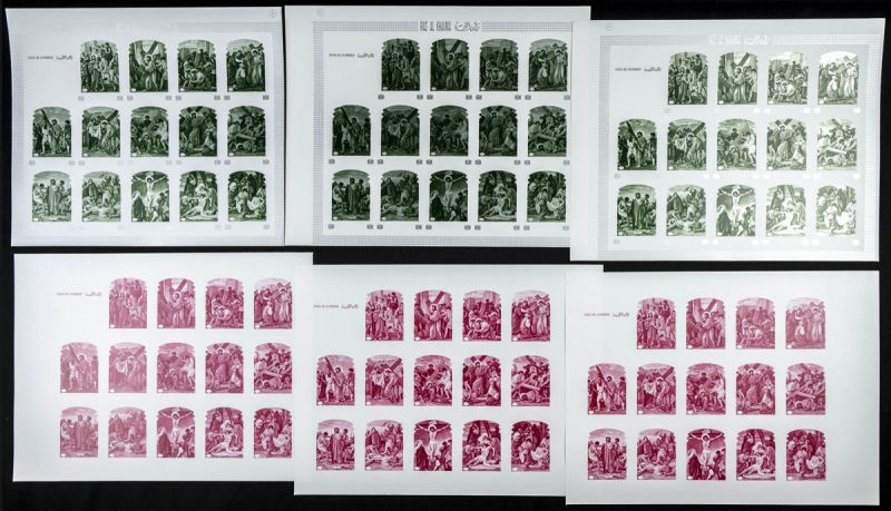 |**|1970. Life of Jesus Christ. Group of progressive plate proofs of the set. (Michel: 491/97). TO EXAM. Description of lots is limited to the cataloguing of the stamps and their characteristics. The total of the material
