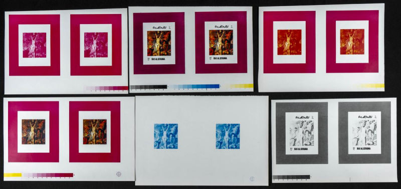 2364 image|**|1970. Crucifixion, P.P. Rubens. Group of progressive plate proofs of the set. (Michel: B150). TO EXAM.