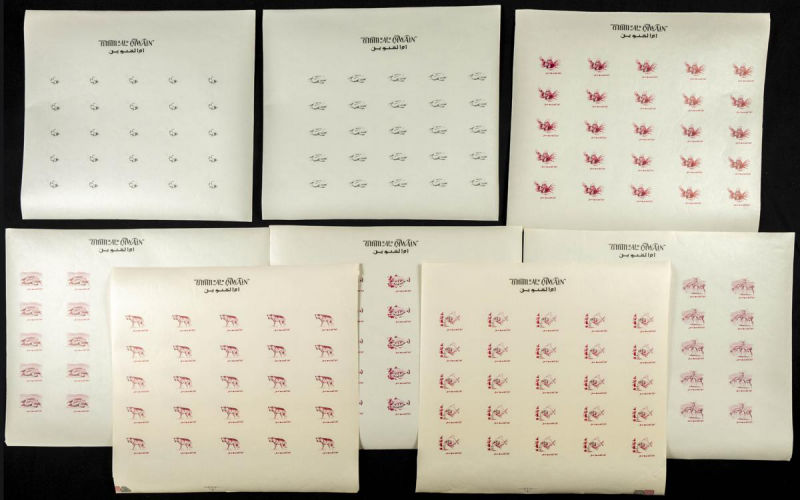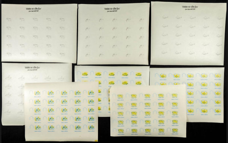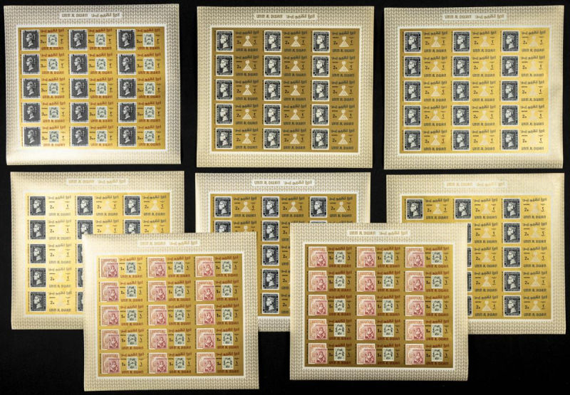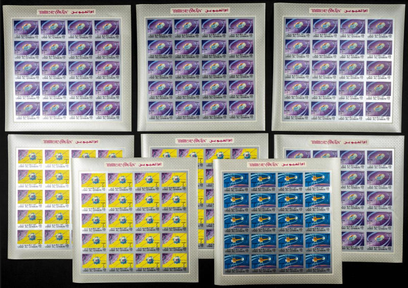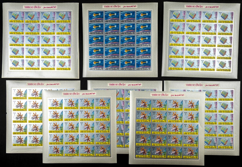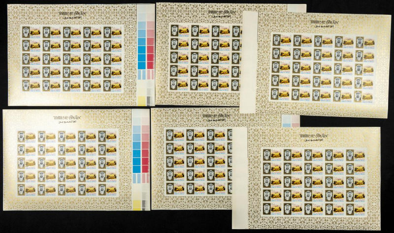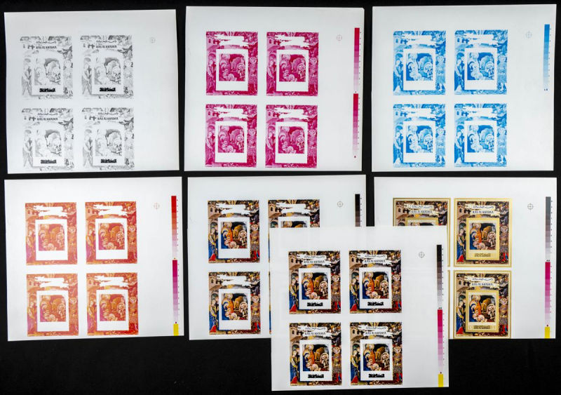 2757 image|**|1964. AHMED BIN RASHID AL MOALLA, Definitives. Group of progressive plate proofs of the set. (Michel: 1/18). TO EXAM.