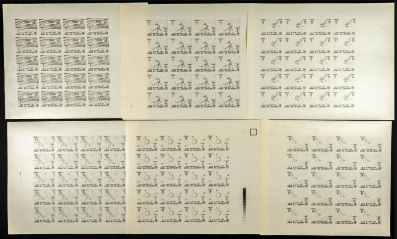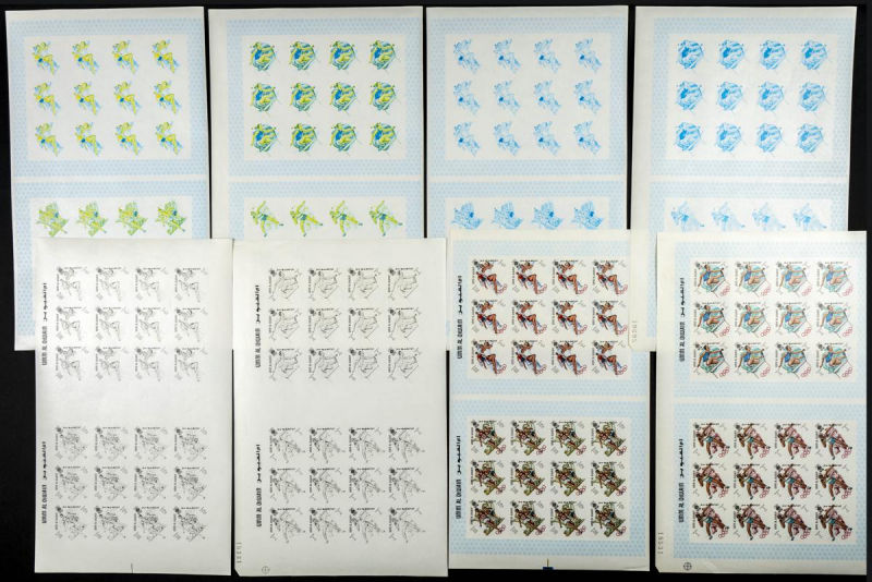 |**|1968. Olimpic games. Group of progressive plate proofs of the set. (Michel: 264/72). TO EXAM. Description of lots is limited to the cataloguing of the stamps and their characteristics. The total of the material included in
