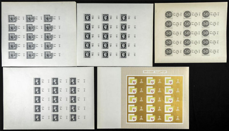 |**|1967. Stamp exhibition. Group of progressive plate proofs of the set. (Michel: 148/57). TO EXAM. Description of lots is limited to the cataloguing of the stamps and their characteristics. The total of the material included