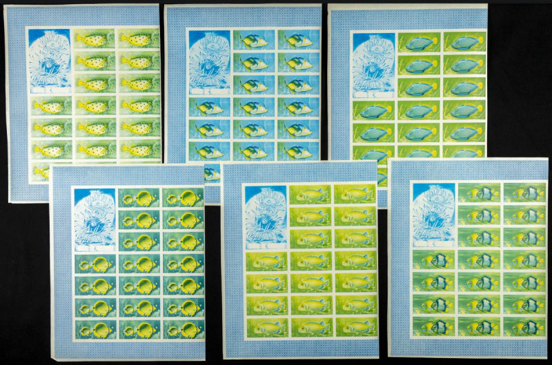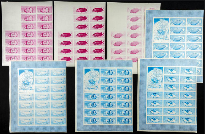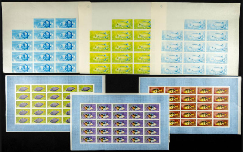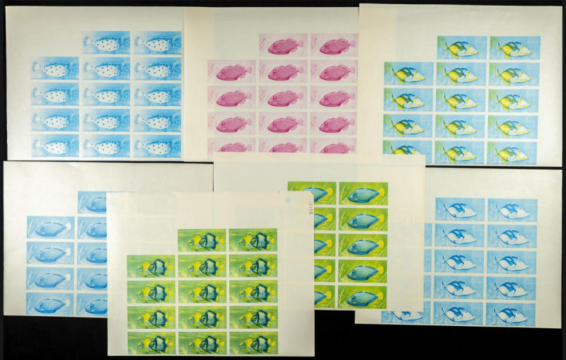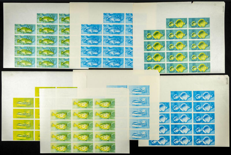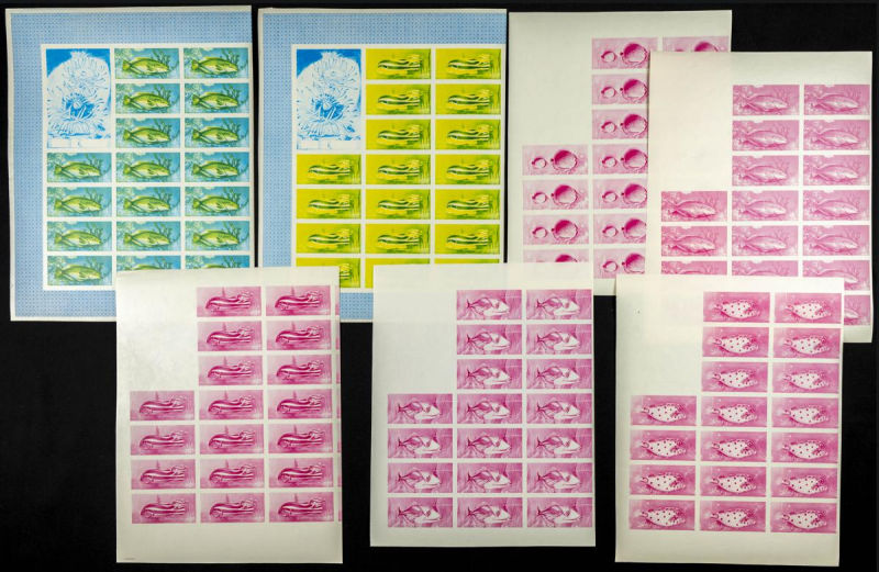 |**|1967. Fish. Group of progressive plate proofs of the set. (Michel: 171/97). TO EXAM. Description of lots is limited to the cataloguing of the stamps and their characteristics. The total of the material included in each case
