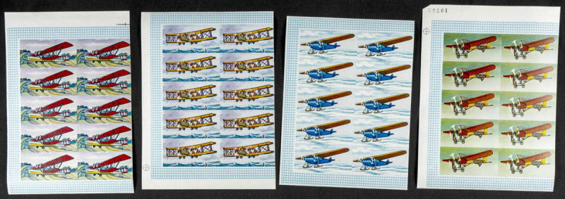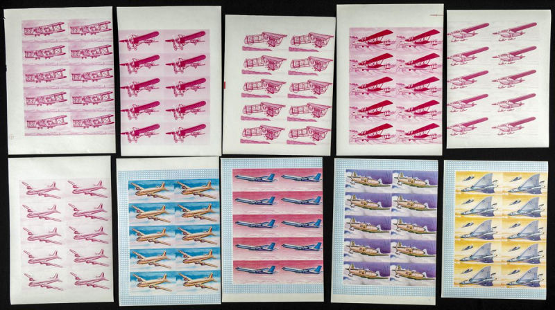 |**|1968. Aviation history. Group of progressive plate proofs of the set. (Michel: 296/04). TO EXAM. Description of lots is limited to the cataloguing of the stamps and their characteristics. The total of the material included