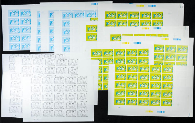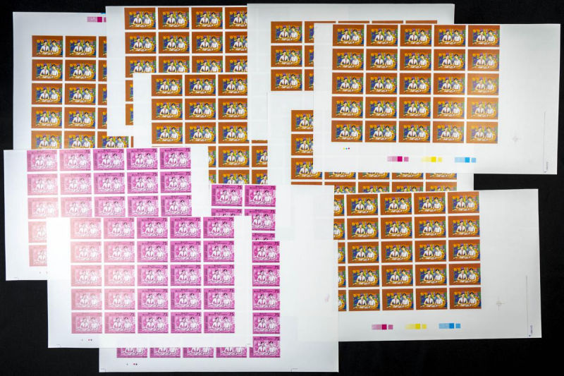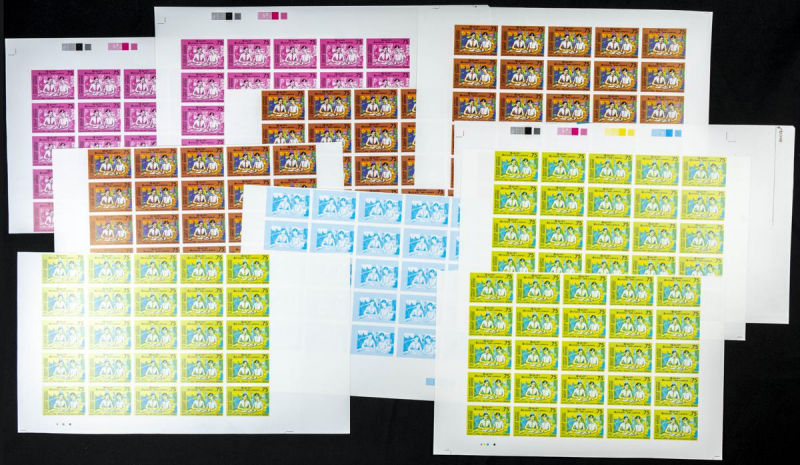 |**|Yvert B4. 1971. Daily life. Group of progressive plate proofs of the set. TO EXAM. Description of lots is limited to the cataloguing of the stamps and their characteristics. The total of the material included in each case is