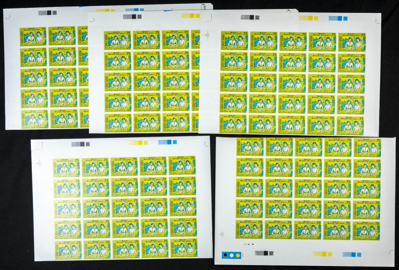 |**|Yvert 740. 1986. Mahapola program. Group of progressive plate proofs of the set. TO EXAM. Description of lots is limited to the cataloguing of the stamps and their characteristics. The total of the material included in each