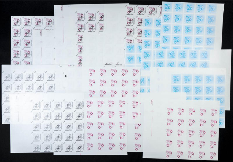 |**|Yvert 815. 1987. Olympic committee. Group of progressive plate proofs of the set. TO EXAM. Description of lots is limited to the cataloguing of the stamps and their characteristics. The total of the material included in each