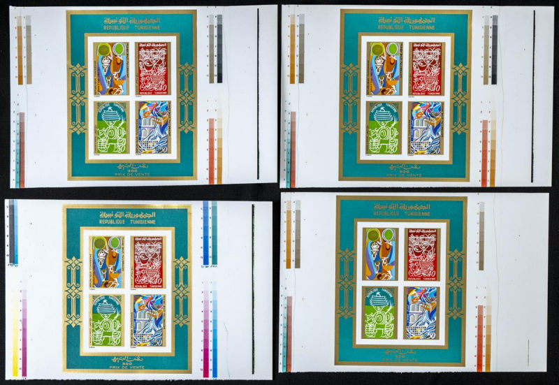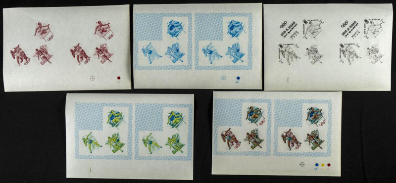|**|1968. Olimpic games. Group of progressive plate proofs of the set. (Michel: B14). TO EXAM. Description of lots is limited to the cataloguing of the stamps and their characteristics. The total of the material included in each