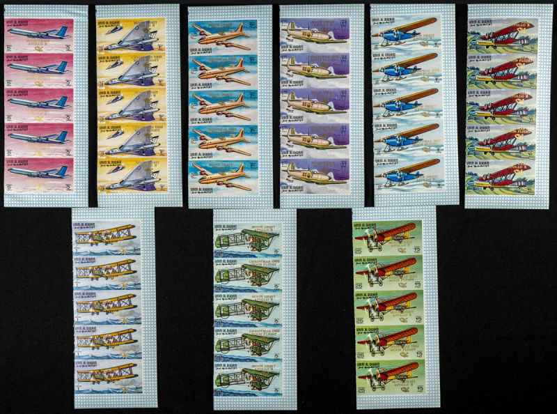 |**|1969. Aviation overprints. Group of IMPERFORATED sets. (Michel: 305/13). TO EXAM. Description of lots is limited to the cataloguing of the stamps and their characteristics. The total of the material included in each case is