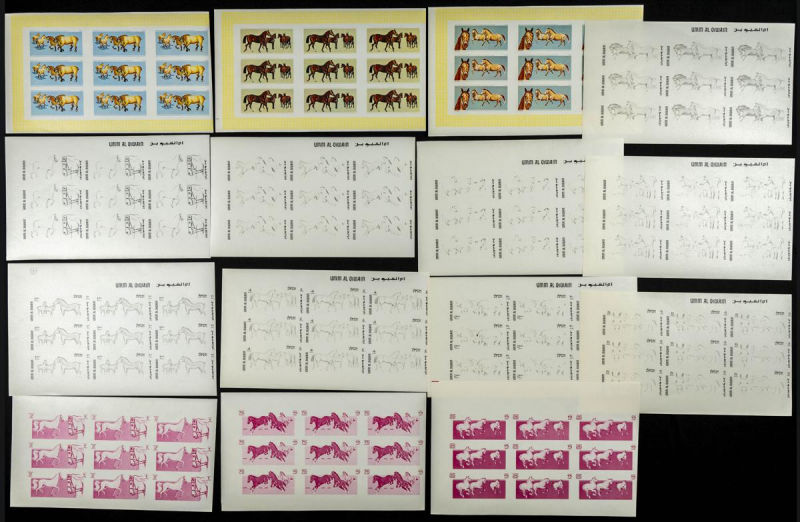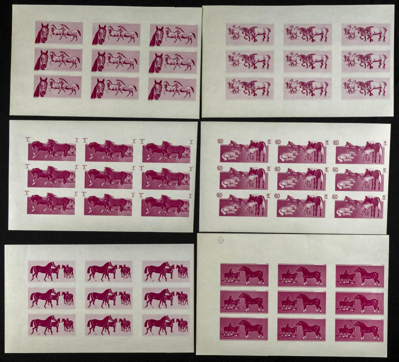 |**|1969. Horses. Group of progressive plate proofs of the set. (Michel: 314/22). TO EXAM. Description of lots is limited to the cataloguing of the stamps and their characteristics. The total of the material included in each