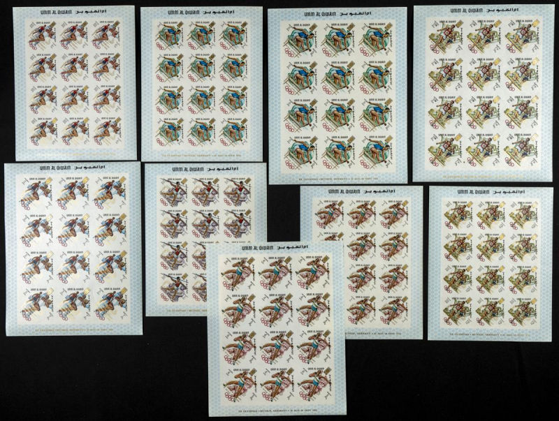 |**|1969. Olympic Games Munich. Group of IMPERFORATED sets. (Michel: 323/31). TO EXAM. Description of lots is limited to the cataloguing of the stamps and their characteristics. The total of the material included in each case is