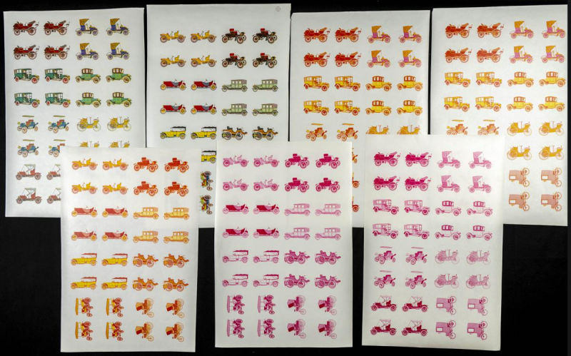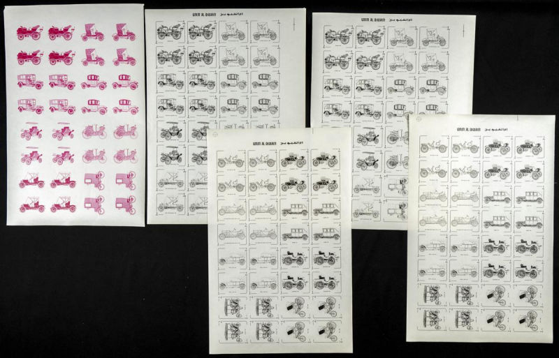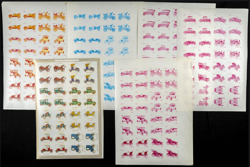 |**|1969. Automobiles. Group of progressive plate proofs of the set. (Michel: 340/87). TO EXAM. Description of lots is limited to the cataloguing of the stamps and their characteristics. The total of the material included in