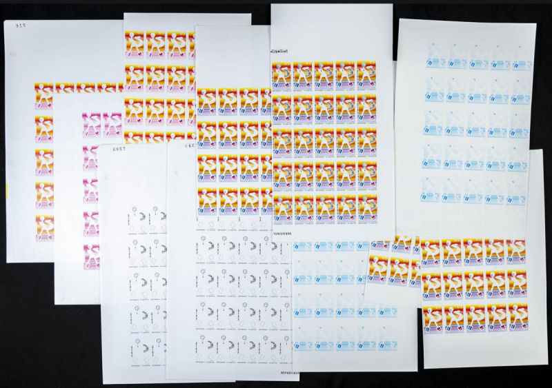 |**|Yvert 812/13. 1975. Mediterranean games. Group of progressive plate proofs of the set. TO EXAM. Description of lots is limited to the cataloguing of the stamps and their characteristics. The total of the material included in