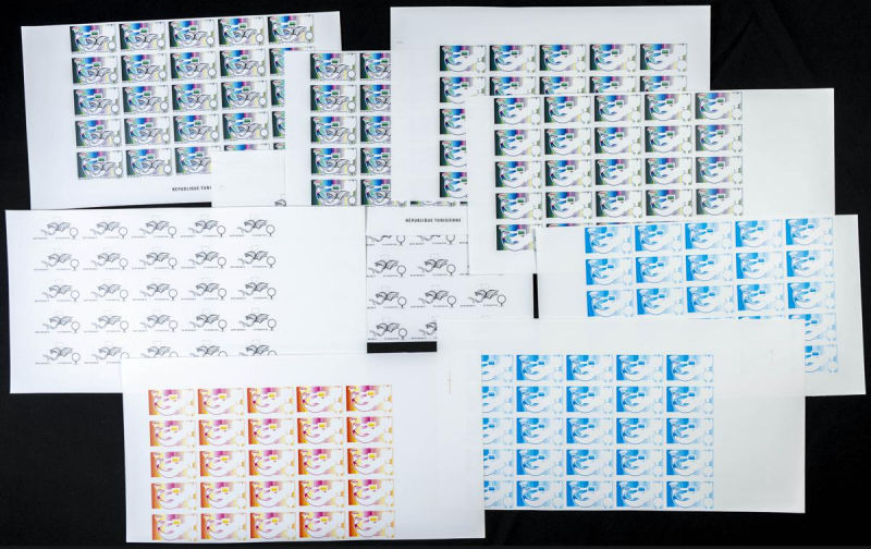 |**|Yvert 751/52. 1973. Telecommunication day. Group of progressive plate proofs of the set. TO EXAM. Description of lots is limited to the cataloguing of the stamps and their characteristics. The total of the material included