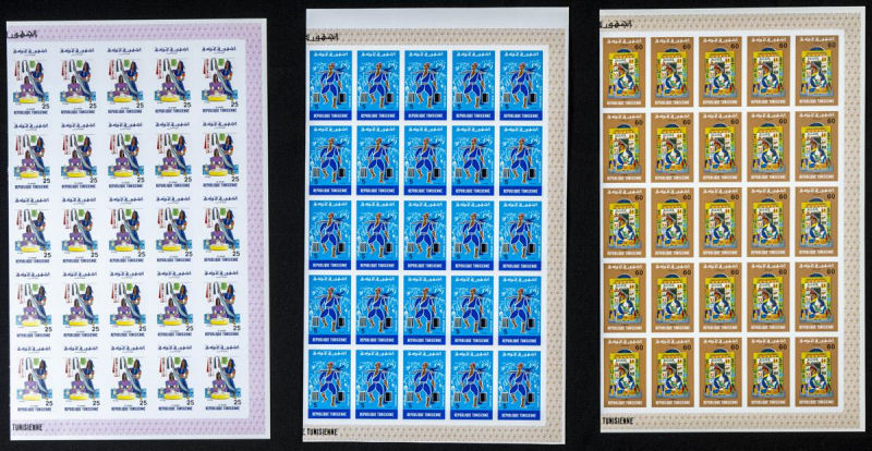 |**|Yvert 787/91. 1975. Daily life. Group of IMPERFORATED sets. TO EXAM. Description of lots is limited to the cataloguing of the stamps and their characteristics. The total of the material included in each case is photographed