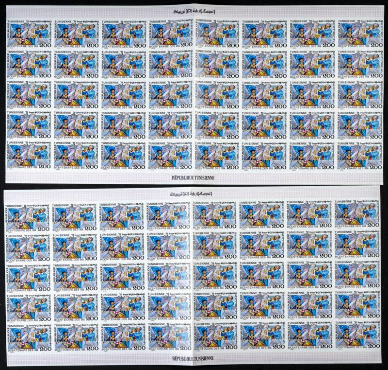 |**|Yvert 836. 1976. US bi-centenary. Group of IMPERFORATED sets. TO EXAM. Description of lots is limited to the cataloguing of the stamps and their characteristics. The total of the material included in each case is