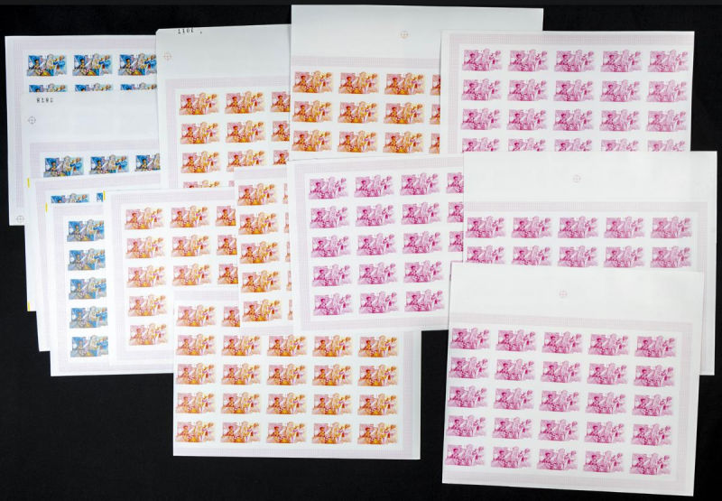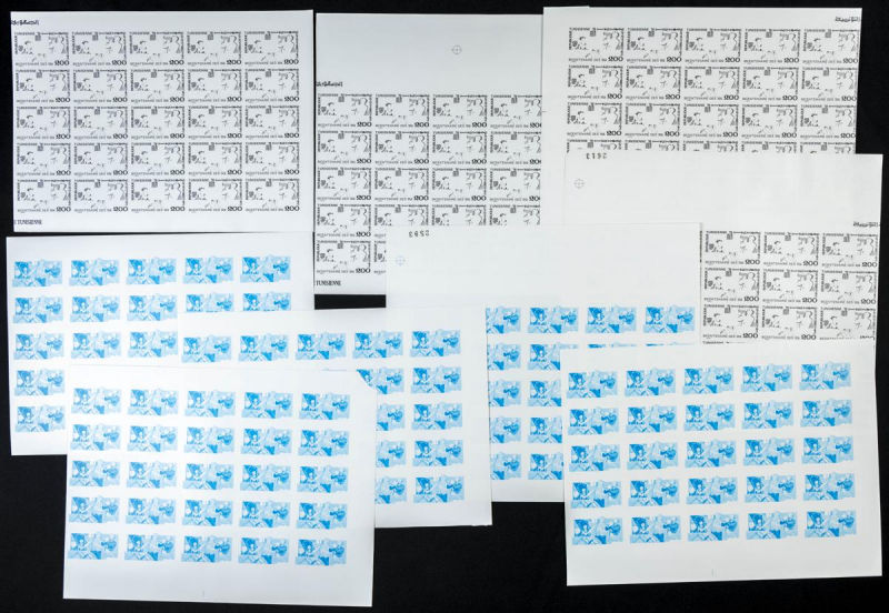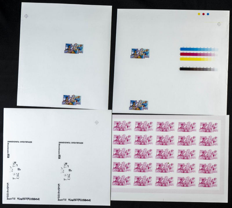 |**|Yvert 759/60. 1973. Stamp Day. Group of progressive plate proofs of the set. TO EXAM. Description of lots is limited to the cataloguing of the stamps and their characteristics. The total of the material included in each case