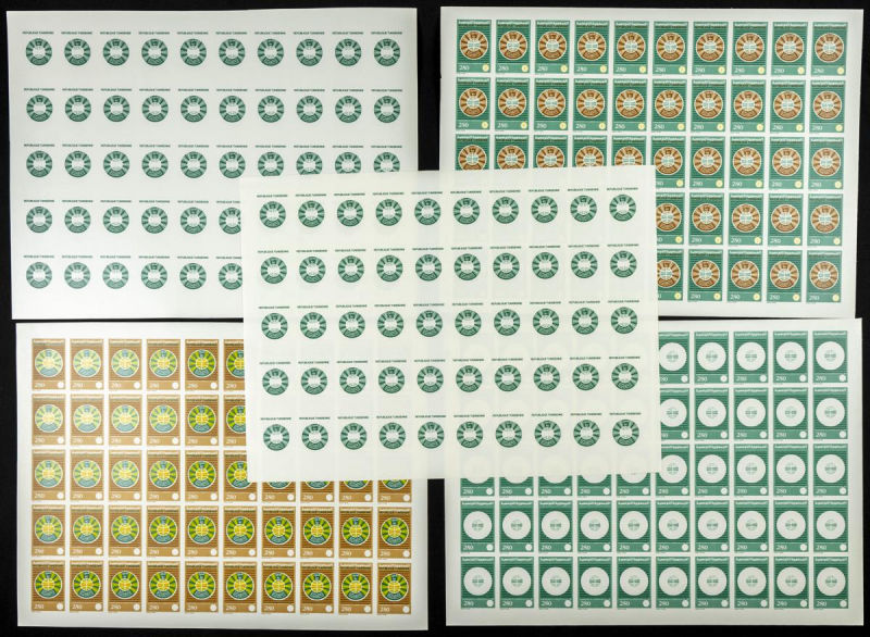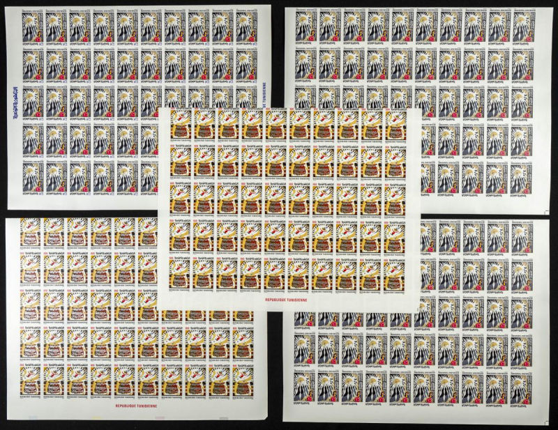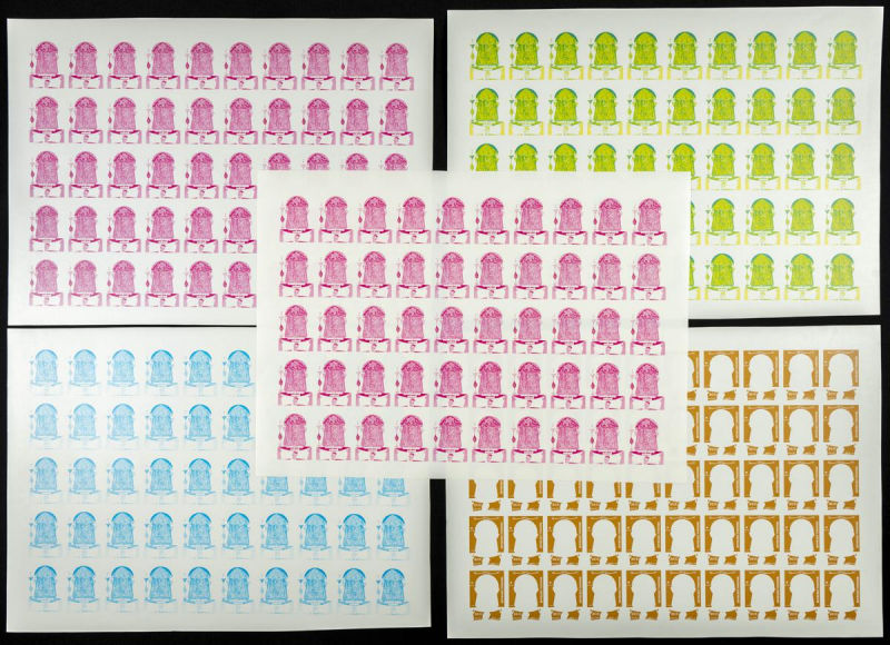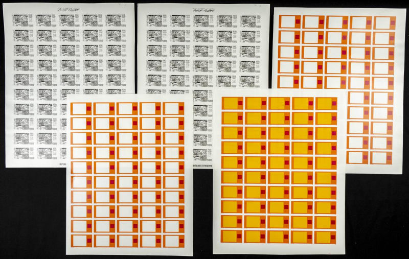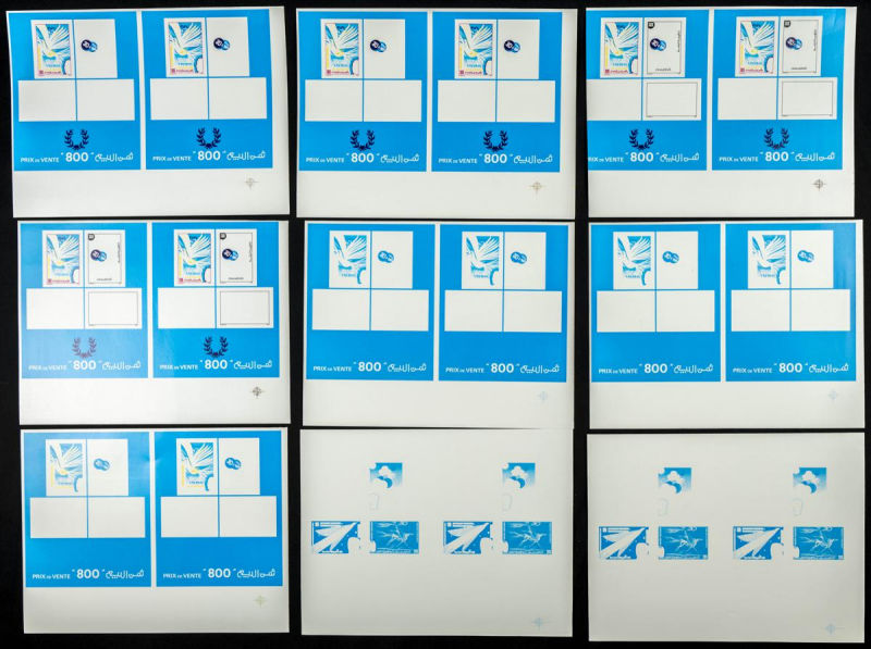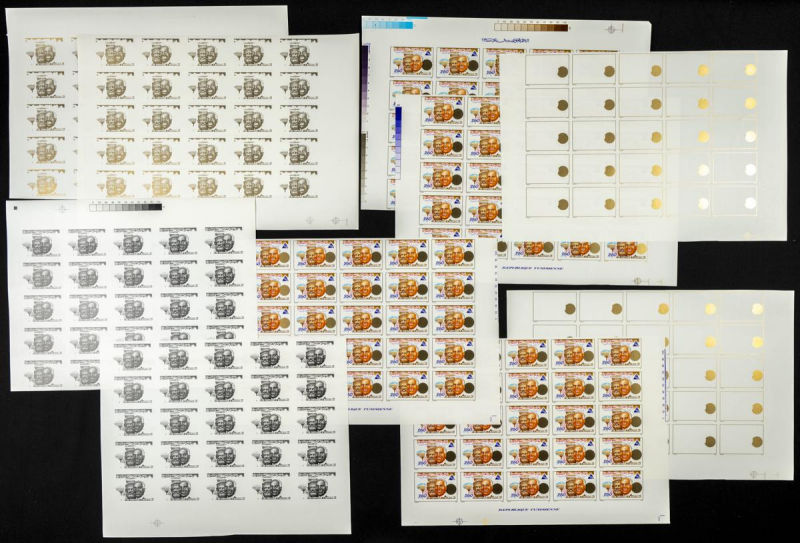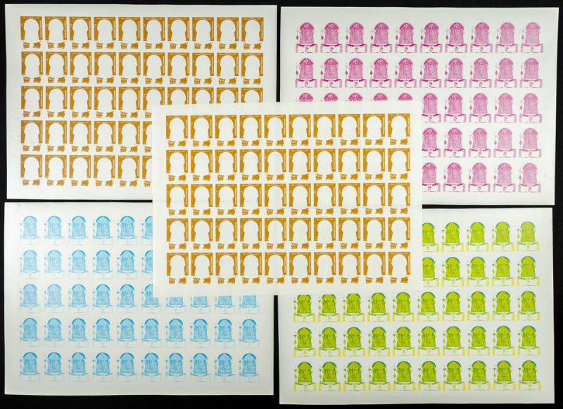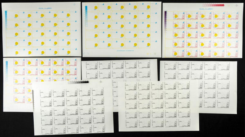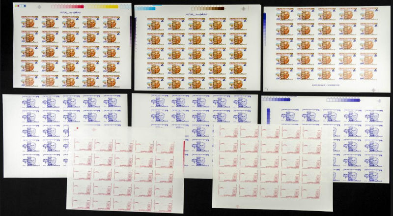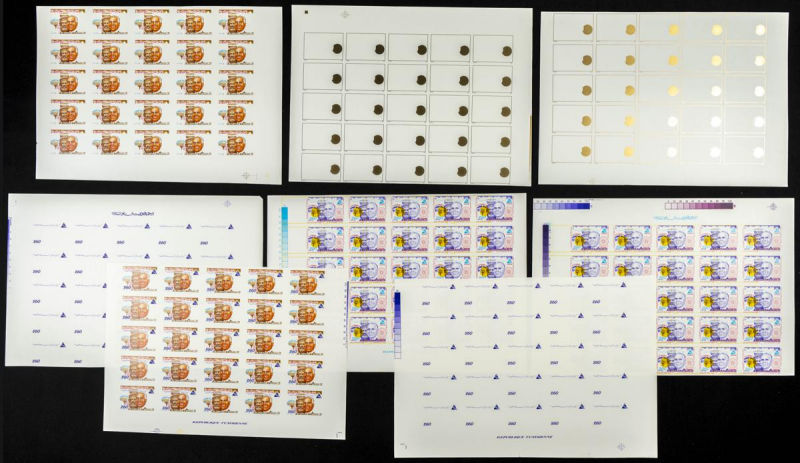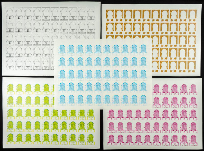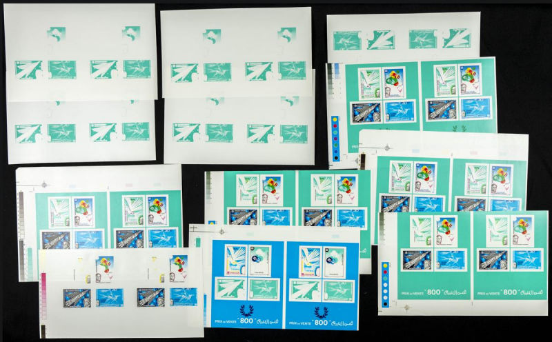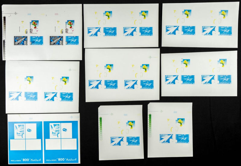 |**|Yvert 1048/51. 1986. 30 years independence. Group of progressive plate proofs of the set. TO EXAM. Description of lots is limited to the cataloguing of the stamps and their characteristics. The total of the material included