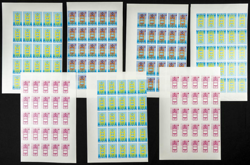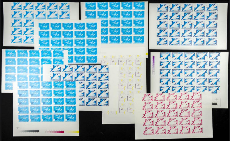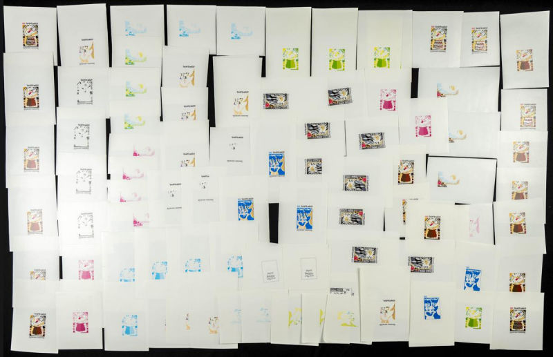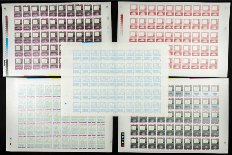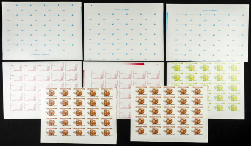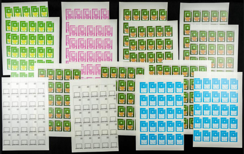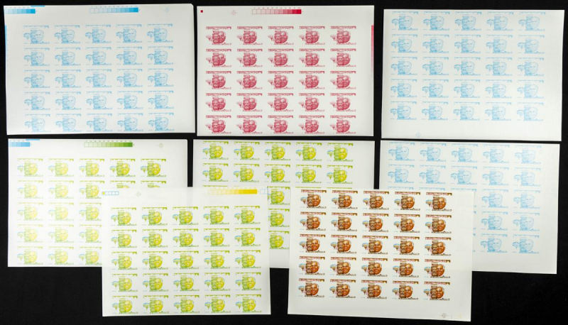 |**|Yvert 1071. 1986. Introducing Computer Science in Teaching. Group of progressive plate proofs of the set. TO EXAM. Description of lots is limited to the cataloguing of the stamps and their characteristics. The total of the