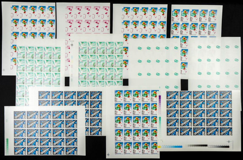 |**|Yvert B21. 1986. 30 years independence. Group of progressive plate proofs of the set. TO EXAM. Description of lots is limited to the cataloguing of the stamps and their characteristics. The total of the material included in