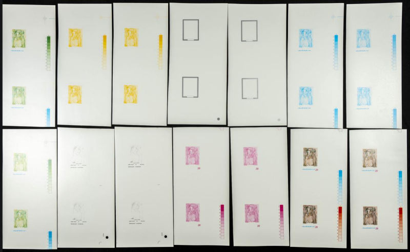 |**|Yvert 1068. 1986. Painting. Group of progressive plate proofs of the set. TO EXAM. Description of lots is limited to the cataloguing of the stamps and their characteristics. The total of the material included in each case is