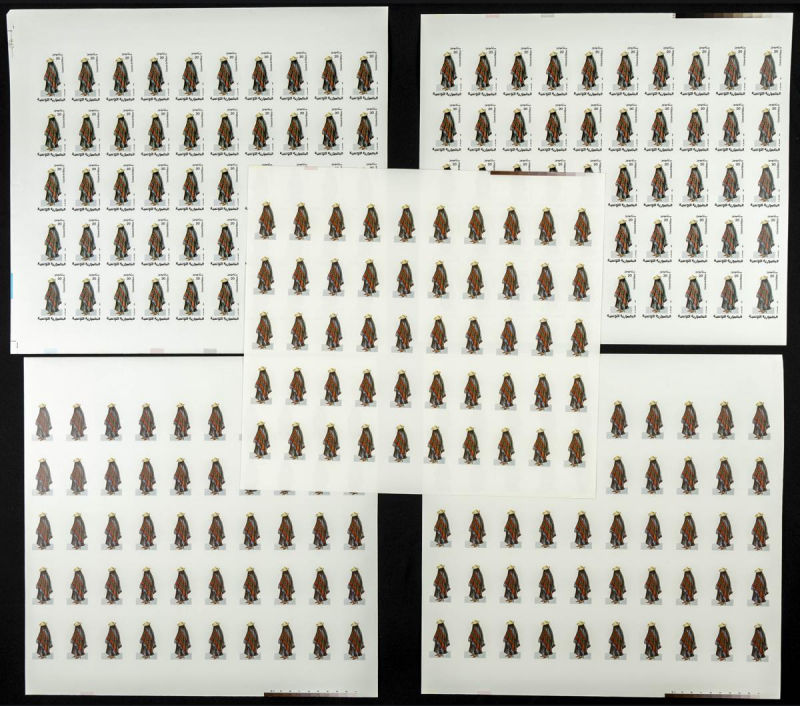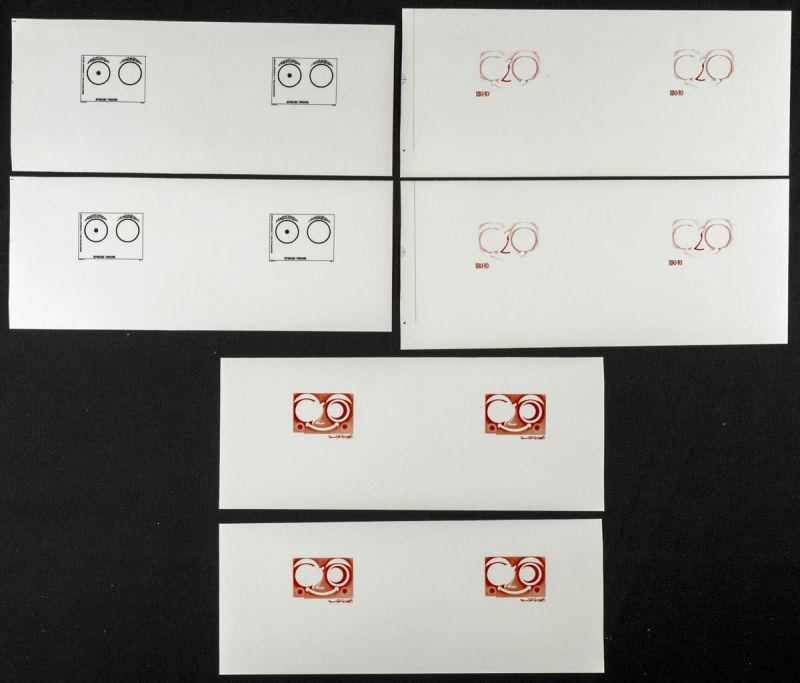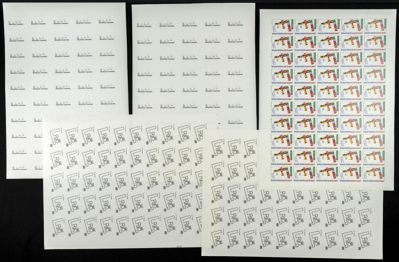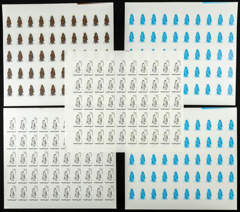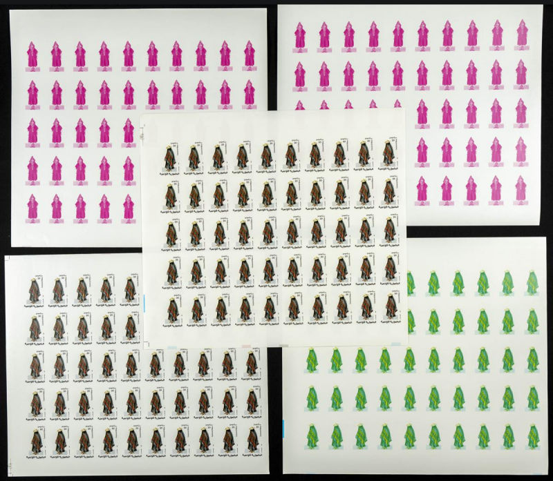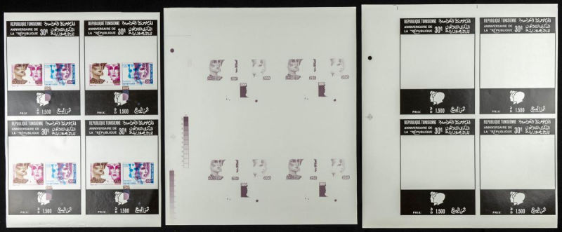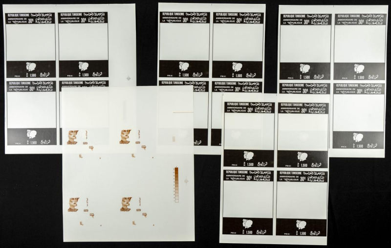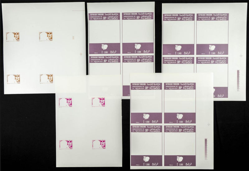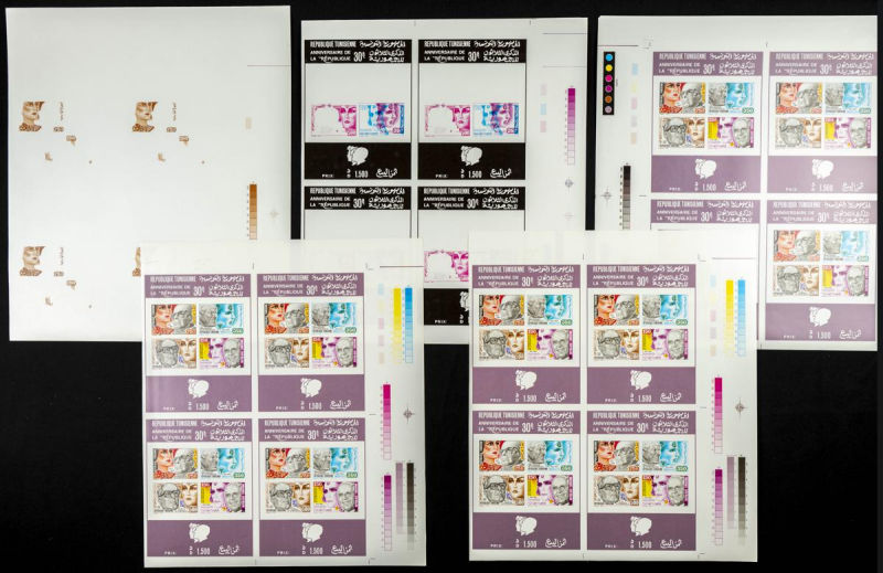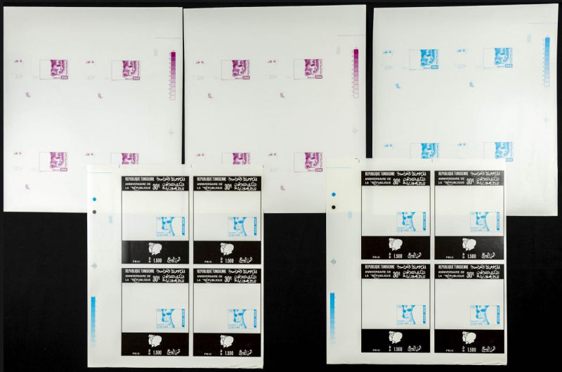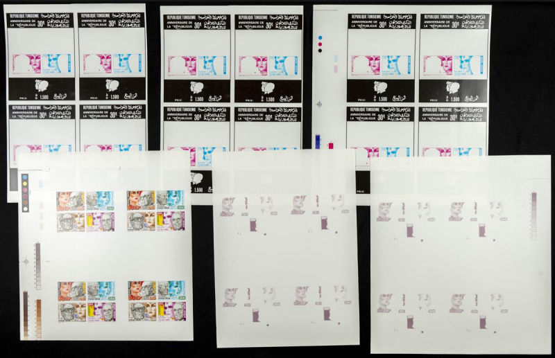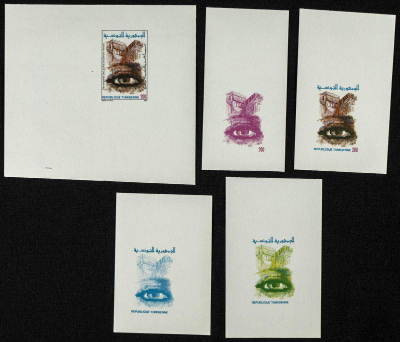 |**|Yvert 1133/34. 1989. Tunis fair. Group of progressive plate proofs of the set. TO EXAM. Description of lots is limited to the cataloguing of the stamps and their characteristics. The total of the material included in each