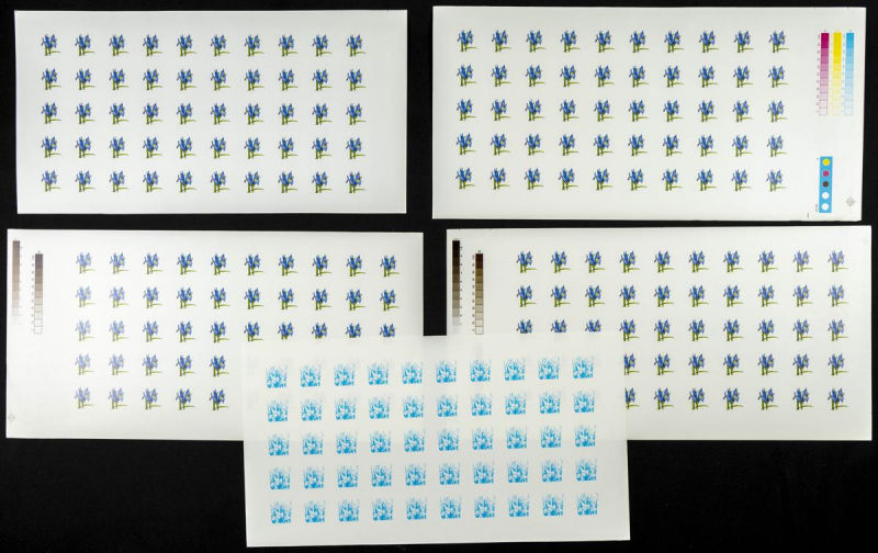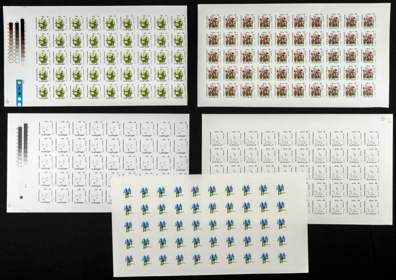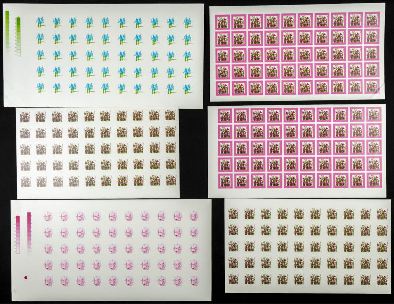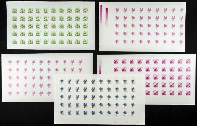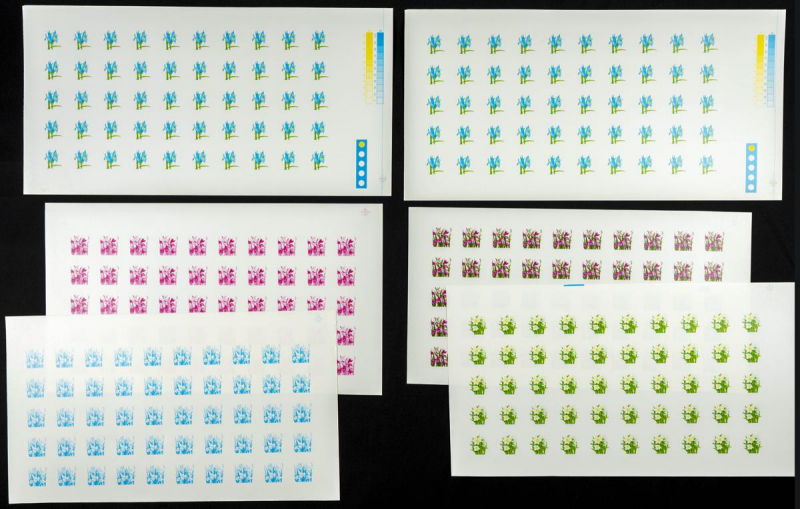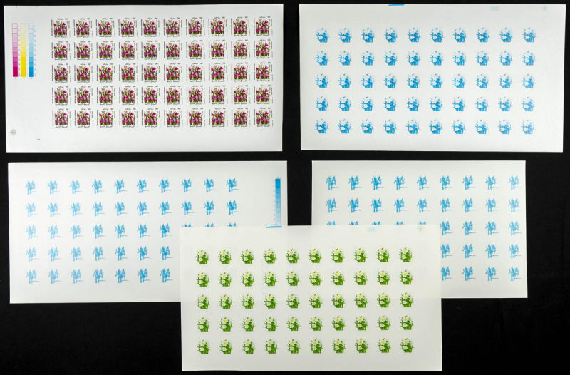 |**|Yvert 1096/99. 1987. Flowers. Group of progressive plate proofs of the set. TO EXAM. Description of lots is limited to the cataloguing of the stamps and their characteristics. The total of the material included in each case