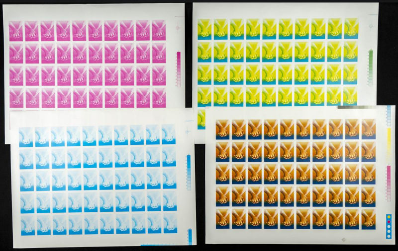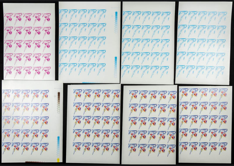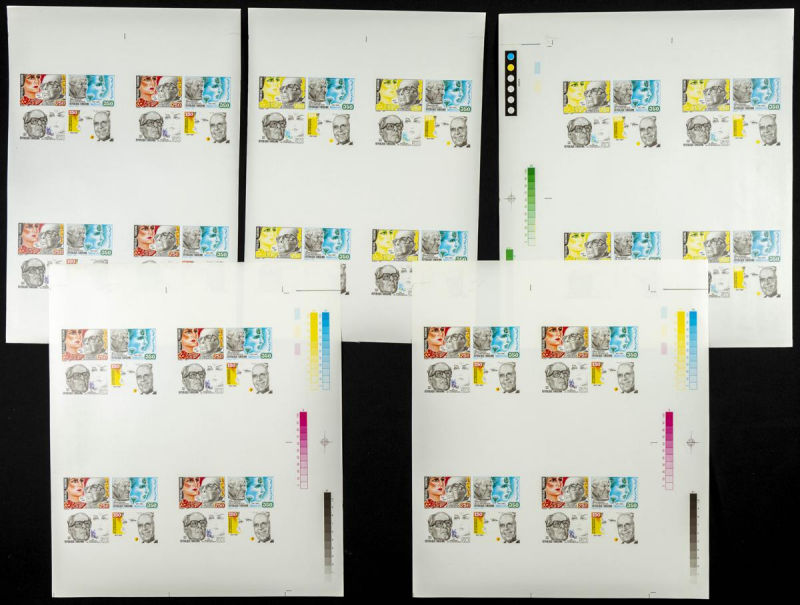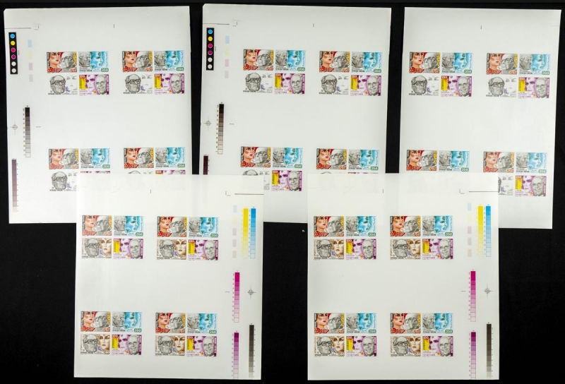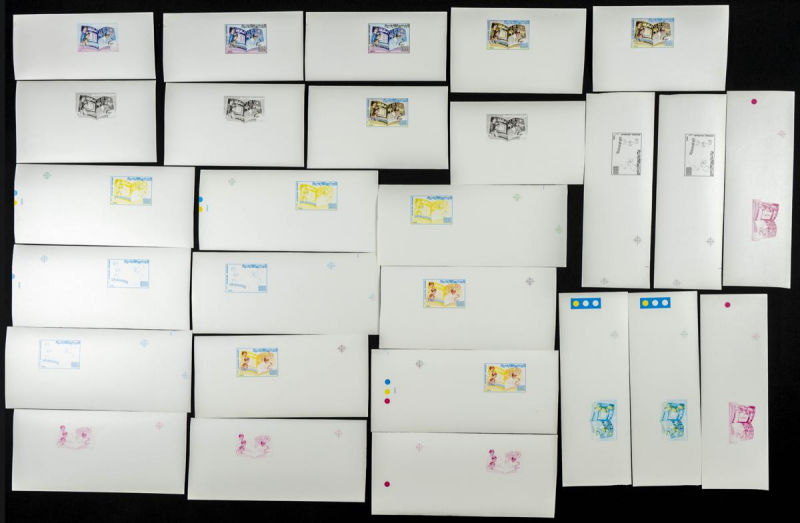 |**|Yvert 1127. 1989. Disabled people. Group of progressive plate proofs of the set. TO EXAM. Description of lots is limited to the cataloguing of the stamps and their characteristics. The total of the material included in each