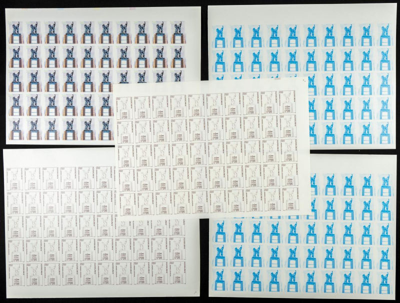 |**|Yvert 1107/08. 1988. 50th Anniversary of Martyrs Day. Group of progressive plate proofs of the set. TO EXAM. Description of lots is limited to the cataloguing of the stamps and their characteristics. The total of the