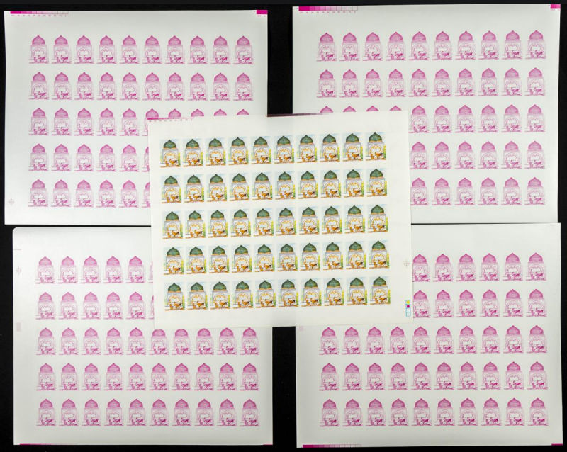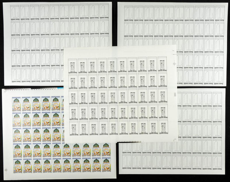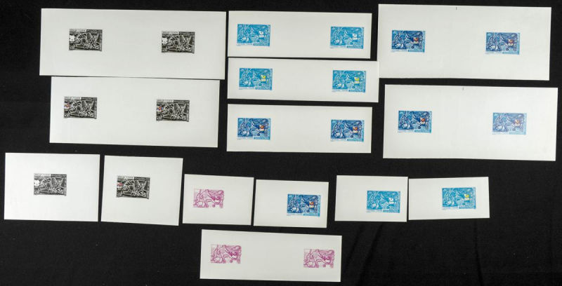 |**|Yvert 1113. 1988. Sanaa. Group of progressive plate proofs of the set. TO EXAM. Description of lots is limited to the cataloguing of the stamps and their characteristics. The total of the material included in each case is