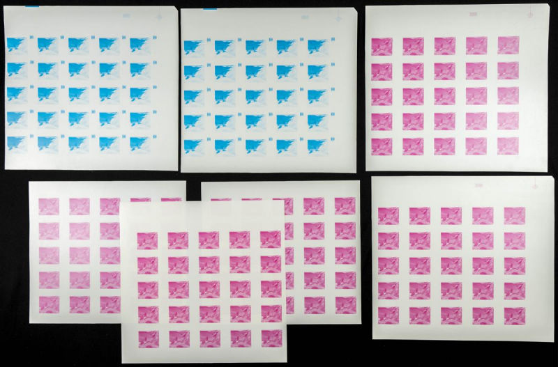 |**|Yvert 1087/88. 1987. 30th Anniversary of the Postal Studies Counselling Board. Group of progressive plate proofs of the set. TO EXAM. Description of lots is limited to the cataloguing of the stamps and their characteristics.