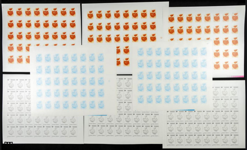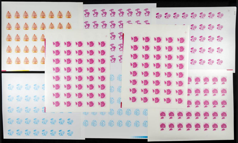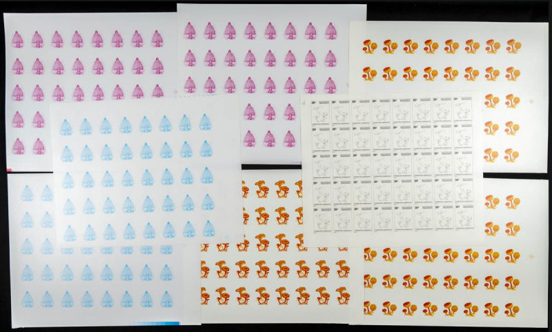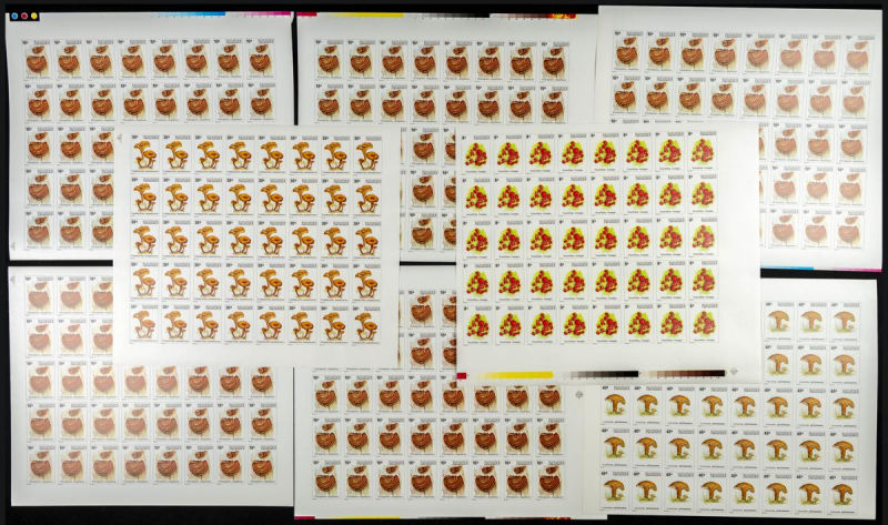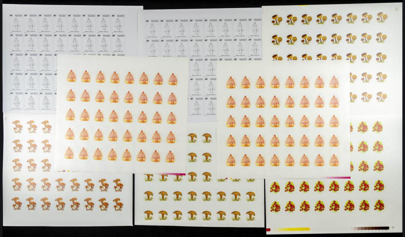 |**|Yvert 943/50. 1979. Mushrooms. Group of progressive plate proofs of the set. TO EXAM. Description of lots is limited to the cataloguing of the stamps and their characteristics. The total of the material included in each case