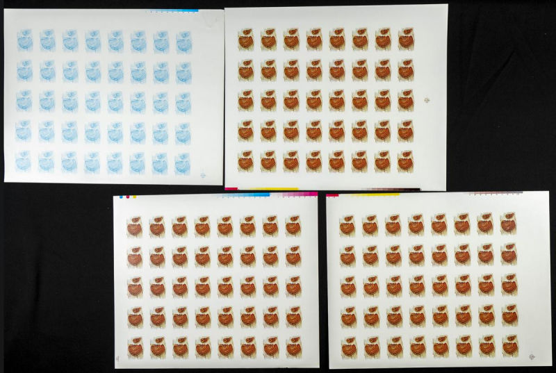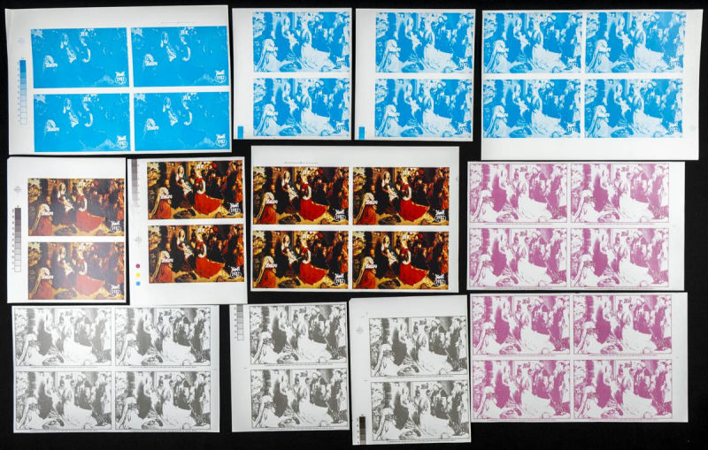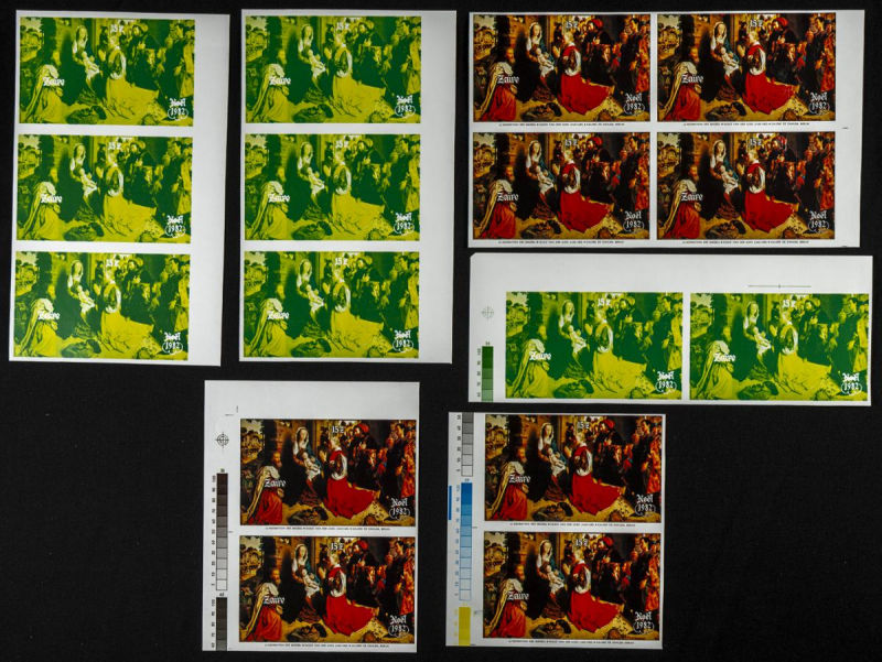 |**|Yvert B30. 1982. Christmas. Group of progressive plate proofs of the set. TO EXAM. Description of lots is limited to the cataloguing of the stamps and their characteristics. The total of the material included in each case is