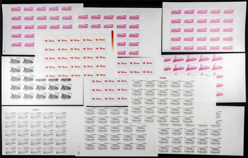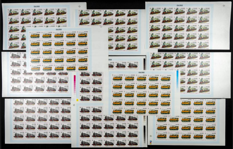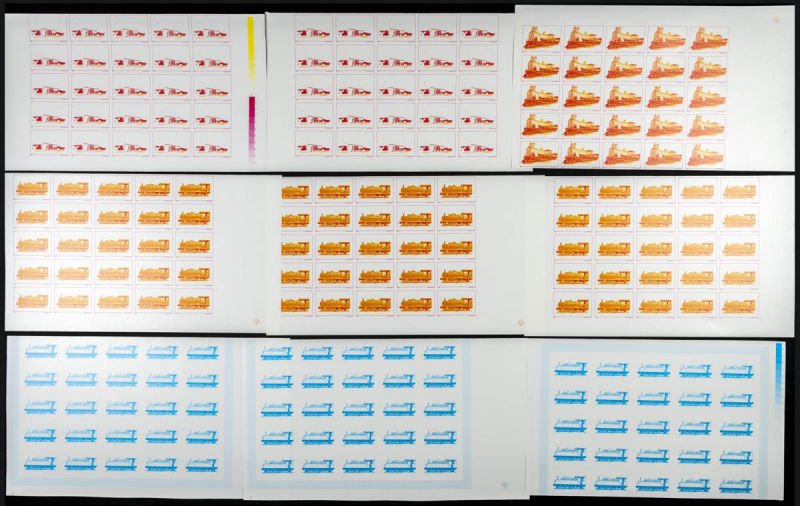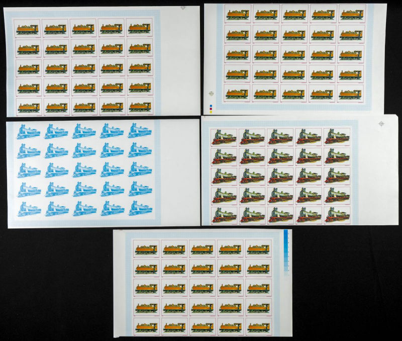 |**|Yvert 992/99. 1980. Locomotives. Group of progressive plate proofs of the set. TO EXAM. Description of lots is limited to the cataloguing of the stamps and their characteristics. The total of the material included in each