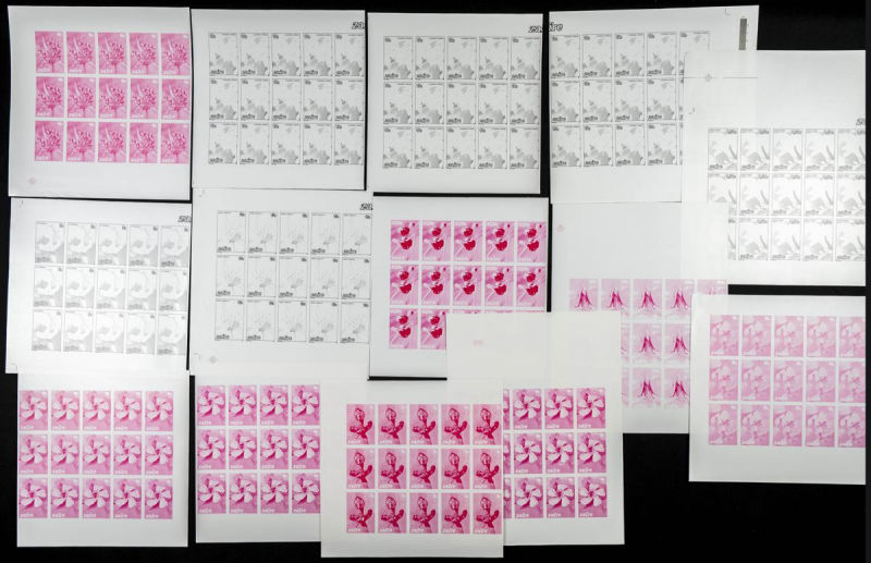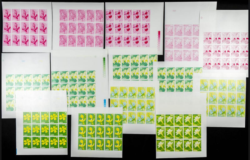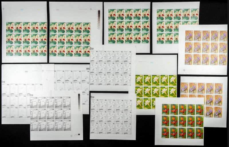 |**|Yvert 1161/68. 1984. Flowers. Group of progressive plate proofs of the set. TO EXAM. Description of lots is limited to the cataloguing of the stamps and their characteristics. The total of the material included in each case