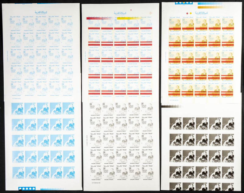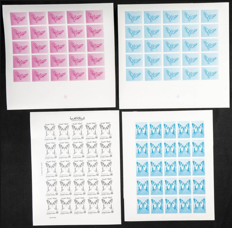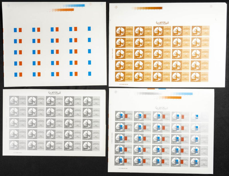 |**|Yvert B899. 1981. Mohammed V airport. Group of progressive plate proofs of the set. TO EXAM. Description of lots is limited to the cataloguing of the stamps and their characteristics. The total of the material included in
