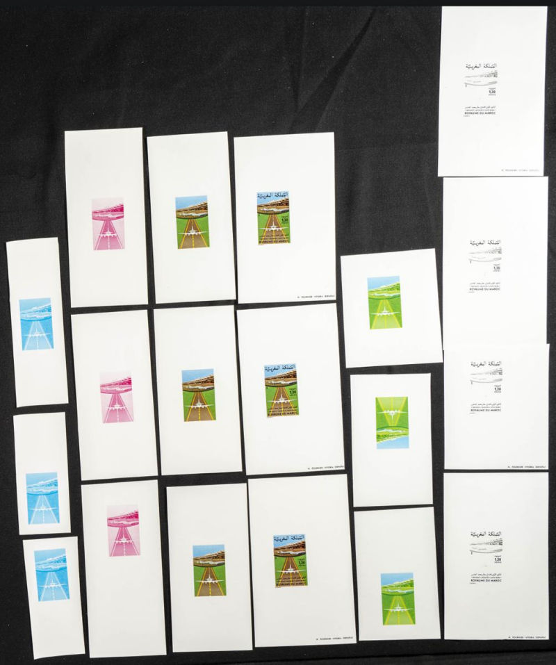 |**|Yvert 899. 1981. Mohammed V airport. Group of progressive plate proofs of the set. TO EXAM. Description of lots is limited to the cataloguing of the stamps and their characteristics. The total of the material included in