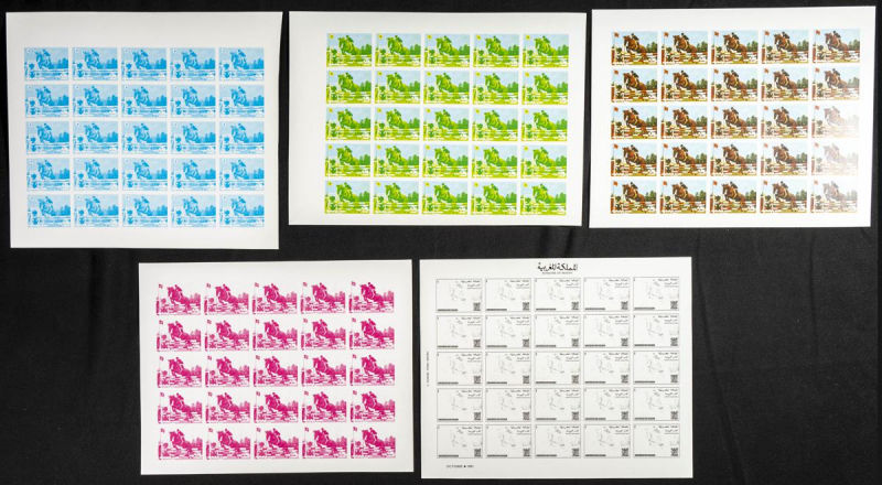 |**|Yvert 903. 1981. Horse sports. Group of progressive plate proofs of the set. TO EXAM. Description of lots is limited to the cataloguing of the stamps and their characteristics. The total of the material included in each case