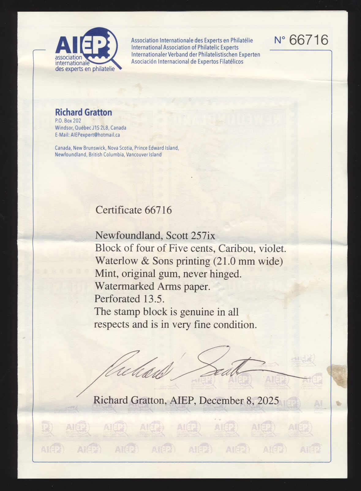 Get Market Data for [Canada (Newfoundland) 257ix] Visual Pricing Guide Sample Census