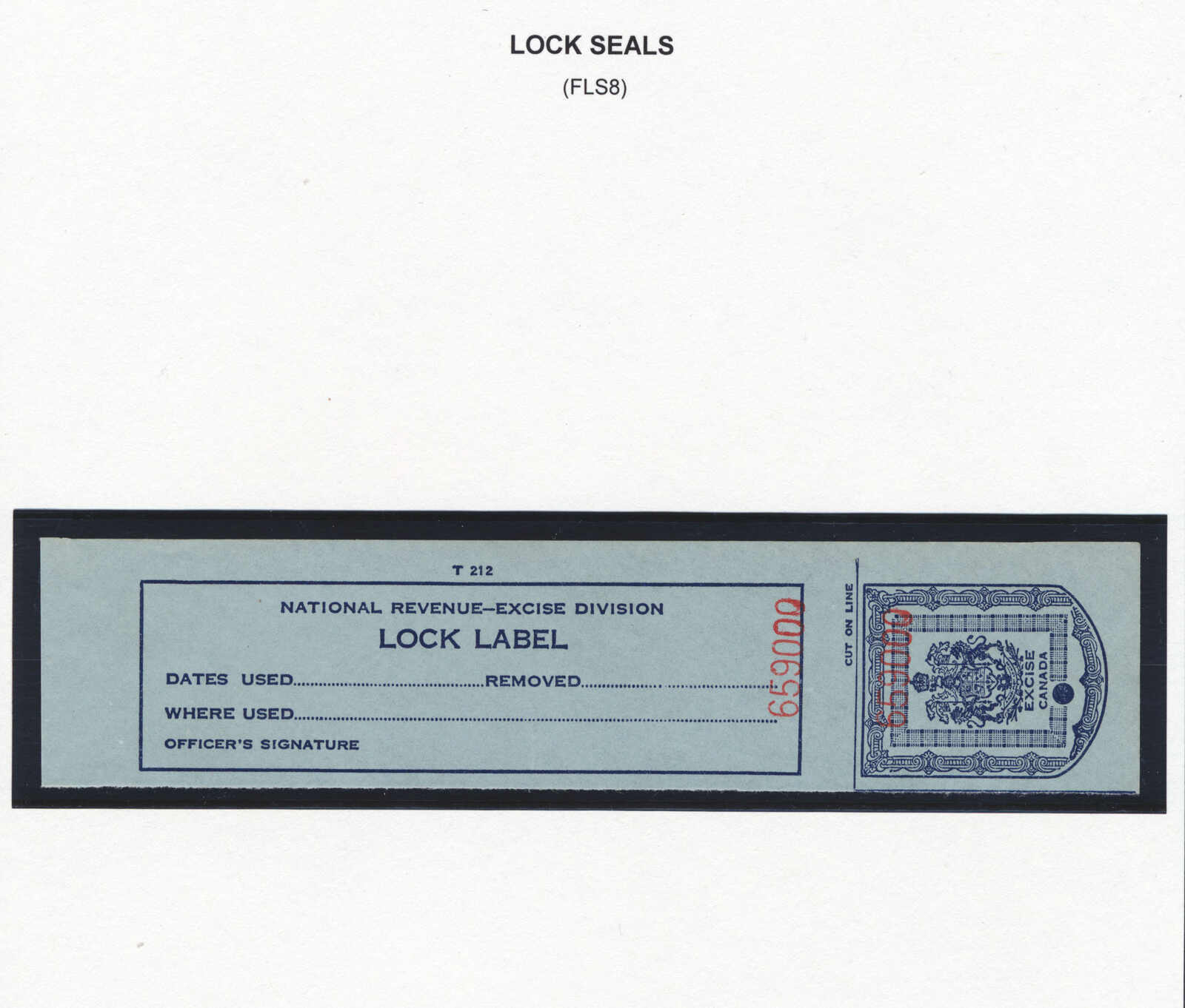 432 ng FLS8 imageFederal Lock Seal, blue-green Coat of Arms, T 212, without gum as issued and bearing red serial number at top, fresh and very fine. (Image 1)